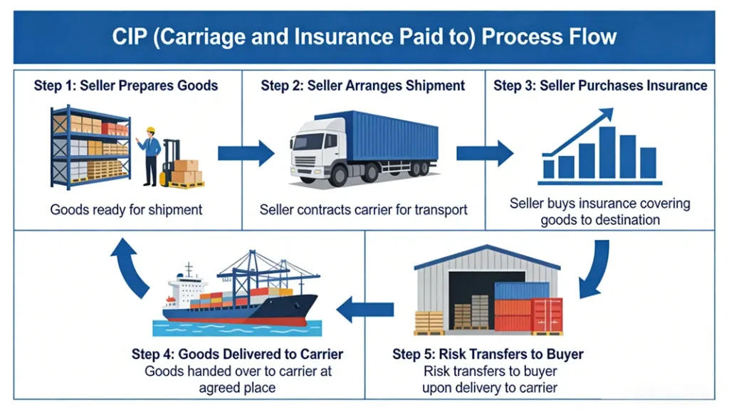 4. CIP (Cost and Insurance Paid To) – CPT + Premium Insurance