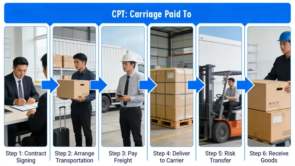 3. CPT (Cost Payable To) – Seller bears the main freight charges.