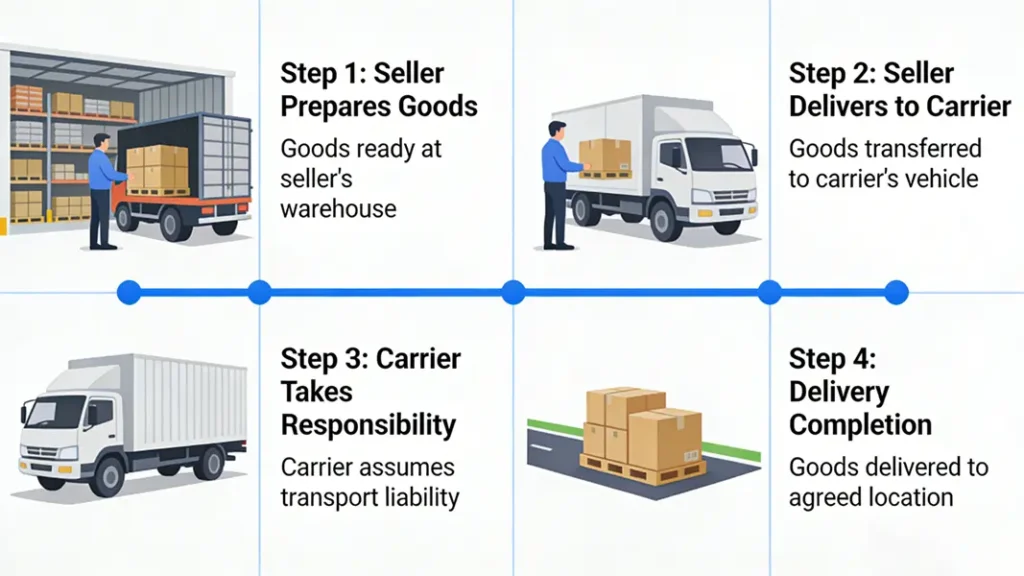 Risk Transfer Point : Risk transfers immediately upon delivery of the goods to the carrier or its agent.