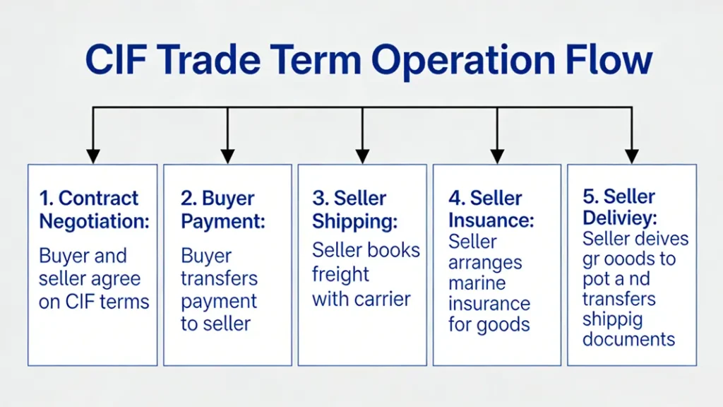 The CIF term extends beyond FOB. Beyond loading the goods and handling export customs clearance, the seller additionally covers ocean freight and cargo insurance costs to the destination port. The point of risk transfer remains consistent with FOB, occurring when the goods cross the ship’s rail at the port of shipment.Under this term, the seller maintains full control over domestic logistics and ocean freight operations, significantly enhancing cargo transportation management and optimizing the overseas customer experience. It is the preferred transaction model for B2B international trade.